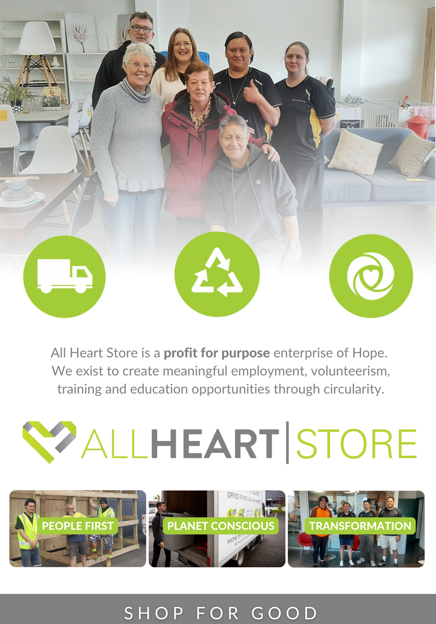 All Heart Store is a Profit for Purpose charity that exists to give hope and restore dignity to our people and our planet. We are dedicated to supporting community good through the creation of employment, training, volunteerism and educational opportunities all while providing a circular solution for redundant corporate and construction goods. The majority of our items are second-hand goods. Which means they will inevitably show signs of general wear and use.