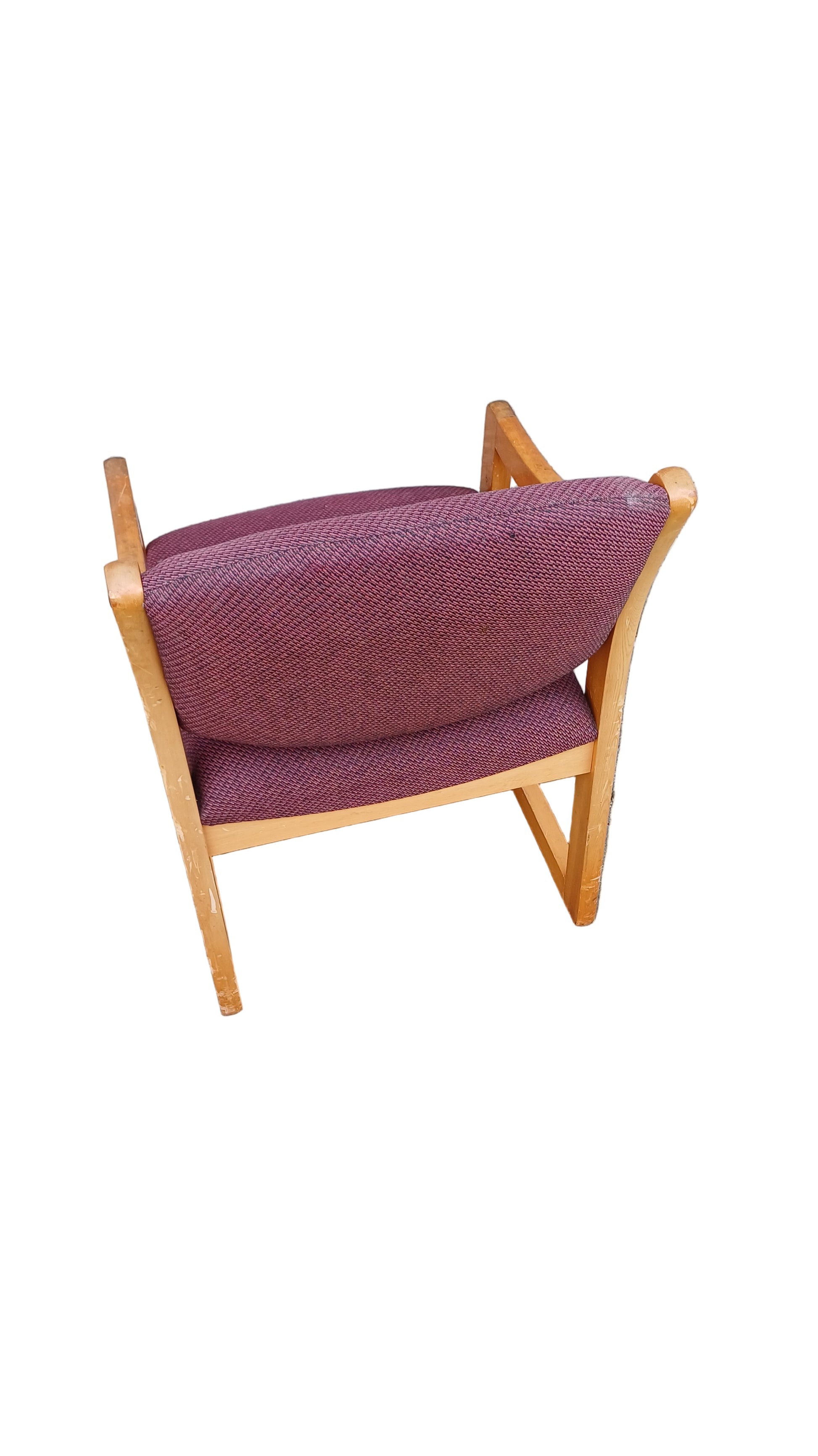 Red chair with wooden legs